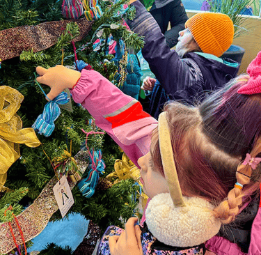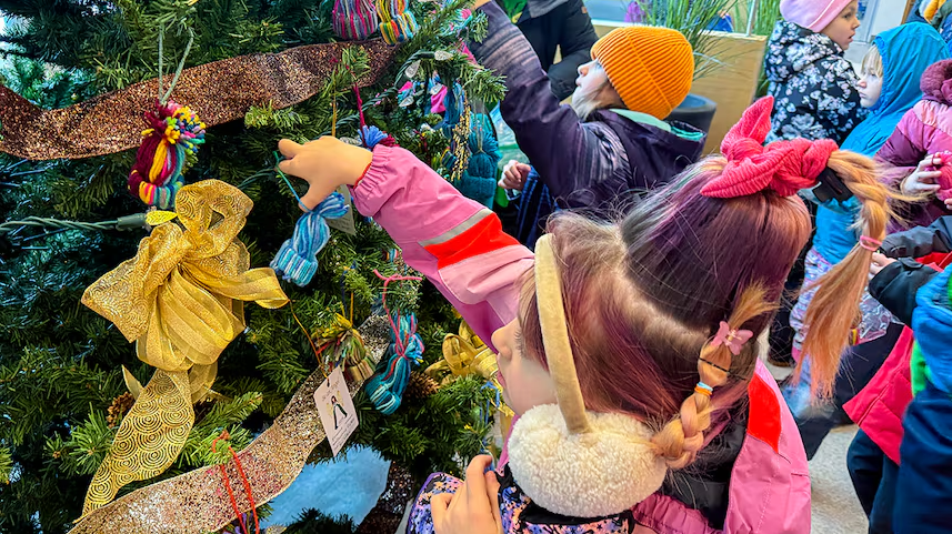 Around 30 students recently bundled up and walked across the street from their school to decorate the hospital’s Angel Tree with handmade ornaments — tiny yarn toques they crafted themselves. The activity has become a yearly tradition since the school opened in 2020.