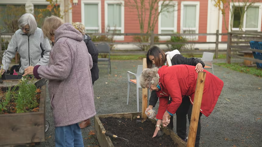 Once a “land girl” in wartime Britain, Freeland spent her youth working farms and orchards during the Second World War. Decades later, living with dementia, she’s rediscovered that connection to the outdoors at The Village Langley — a care facility in the Fraser Valley designed to look and function like a small community rather than a hospital.